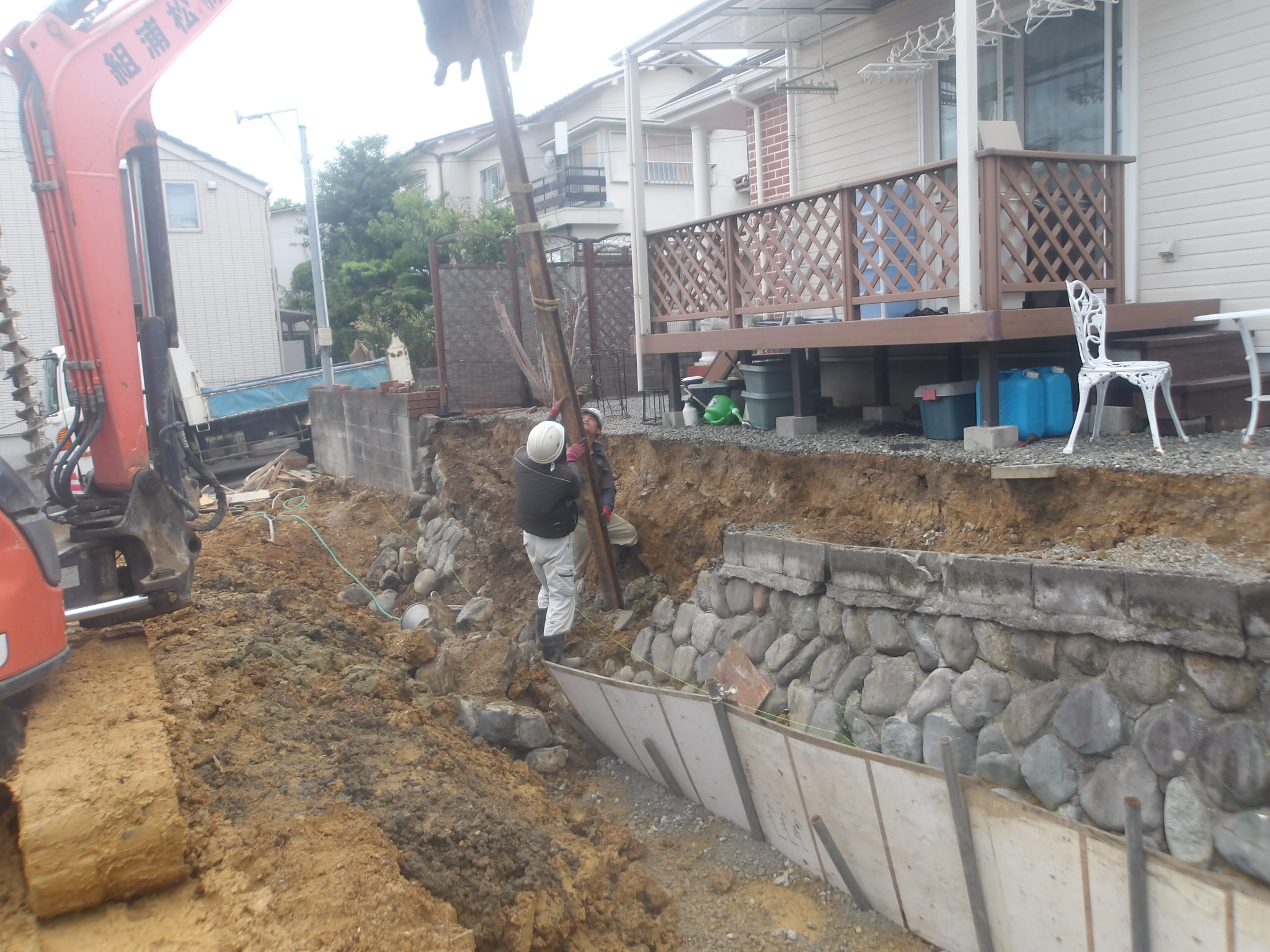 現場打ち擁壁、間知擁壁、水道工事、下水工事、ボックスガレージ